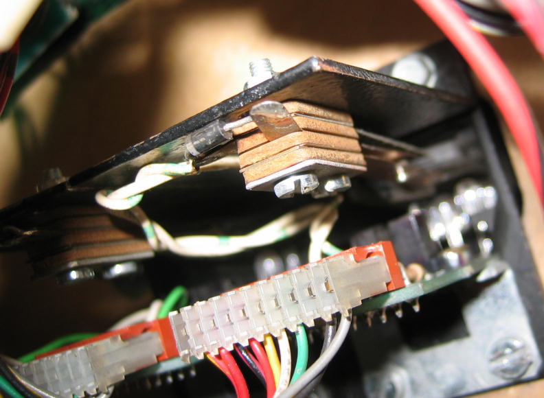 Indianapolis 500 (Bally - 1995)Réparation des contacts ciblesSi les optos des cibles ne fonctionnent plus et que la patte est cassée, il est possible de remplacer l'optocoupleur par un contact à lame standard beaucoup plus costaud que l'on monte sur une plaque métallique.Pas de hack connecteur, ni de vis à dans le plateau, tout est solidaire de la cible et utilise les vis d'origine: