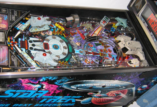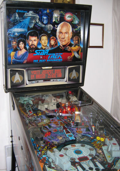Star Trek The Next Generation (aka ST:TNG or STTNG)Le lien vers la fiche: www.ipdb.orgPrésentationLe STTNG est un flip que l'on aime ou que l'on déteste, il est compliqué, le thème ne plait pas à tout le monde, c'est un modèle large et pour couronner le tout il tombe souvent en panne, bref le flip idéal pour tout féru de flip :-), perso je l'adore il est vraiment génial avec la musique et les voix originales, on est vraiment dans l'ambiance, de plus on peut utiliser plusieurs stratégies pour faire des points et la finale à 6 billes est excellente. Une petite vidéo du flip en action: Vidéo (25Mo)