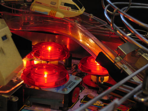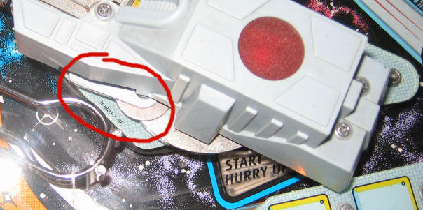 D'origine il n'y a pas de capuchon de bumper sous la rampe de droite, il suffit d'en découper un pour le faire rentrer:1 - découpage du capuchon à la façon d'un pac-man :-)2 - installation sous la rampe: