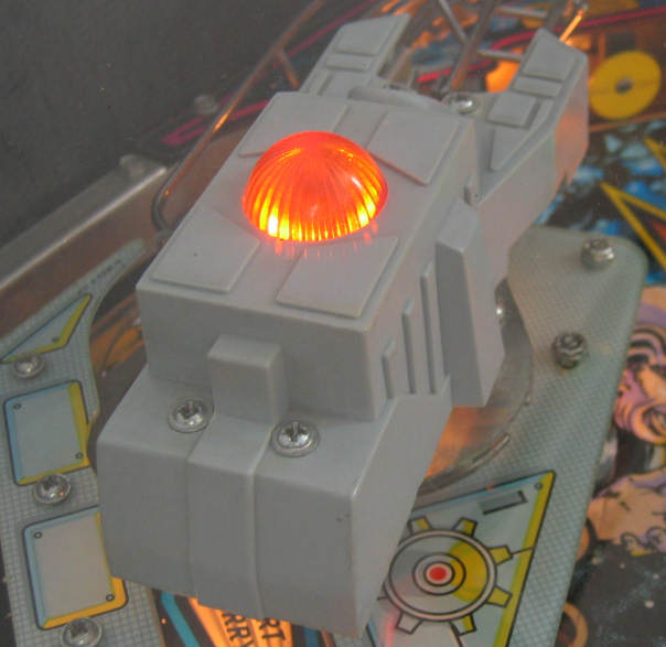 La face avant avec le phaser lance bille et la manchette un peu ressoudé c'est le point faible des flips larges, la manchette qui tient la vitre est très souvent bricolée ou rivetée car fragile, sur la mienne on voit juste quelques points de soudure mais elle reste belle.