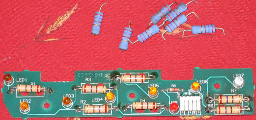 Ajout de patins pour pas rayer le carrelage:Kit de décors de rechange: slinghots, klingon asistance, ferengi, qui sont toujours cassés, maintenant ils sont tous en parfait étatJ'ai 3 autocollants neufs pour les rampes ainsi qu'un câblage tout neuf pour les canons, ils ne sont pas installés car pour l'instant l'ancien câblage fonctionne sans problème:Les résistances du circuit infrarouge du chargeur de bille sont souvent en très mauvais état, j'en avais 2 cassées sur le mien, j'ai donc tout remplacé par du neuf: